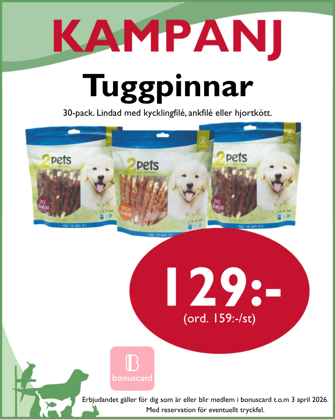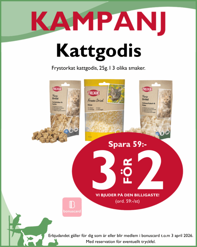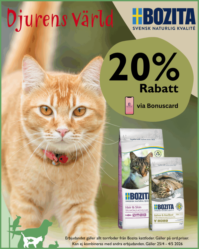 Gäller mellan 25 mars till 3 april 2026 i Djurens Världs Butiker.